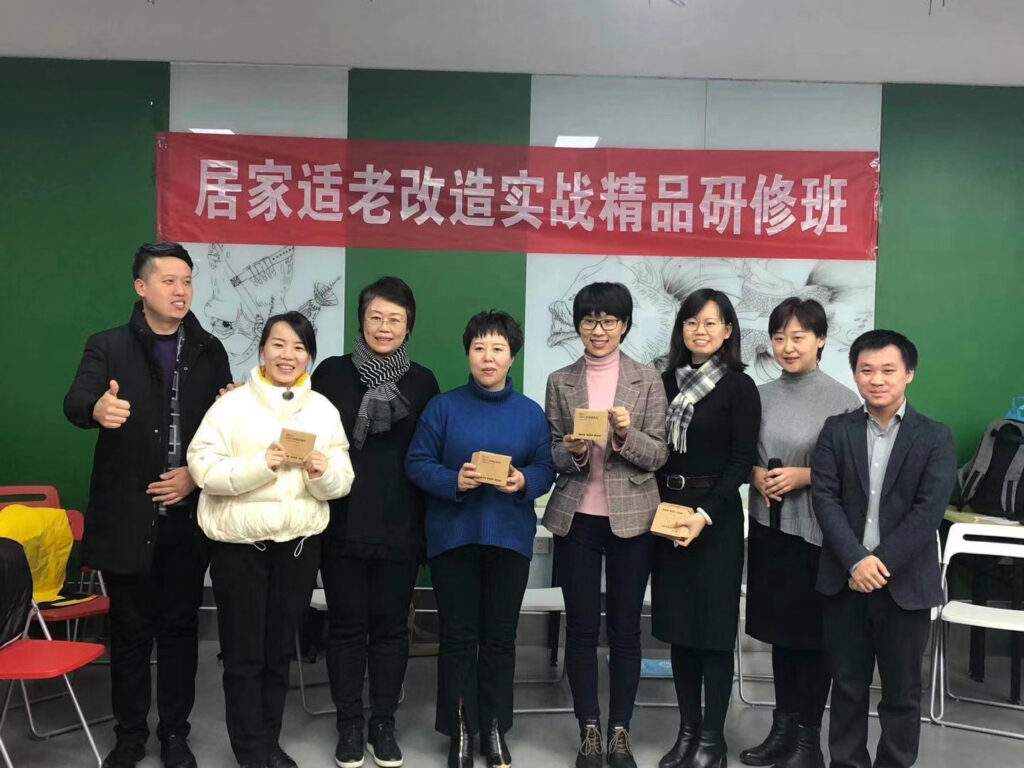 本公司CEO韦晓东受邀参加合作伙伴北京易享生活科技有限公司举办的易享生活居家适老改造实战精品研修活动。本次活动2天10节课程,安排了实地参观样板间、情景模拟、实战演练。参加活动的成员来自全国各地,南到广西,四川,北到黑龙江、吉林。有室内设计师、养老机构院长、辅具销售人员等,可见国内对居家适老化改造的需求和这方面知识和产品的欠缺。